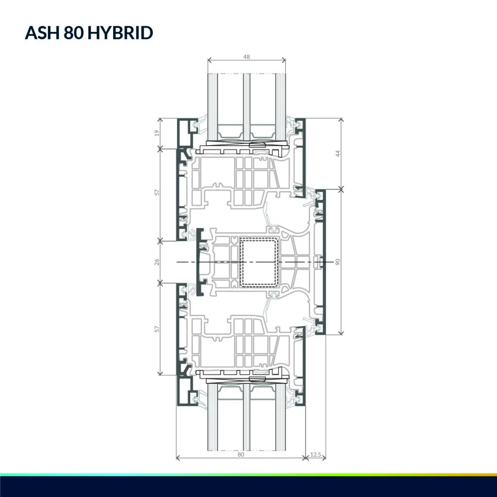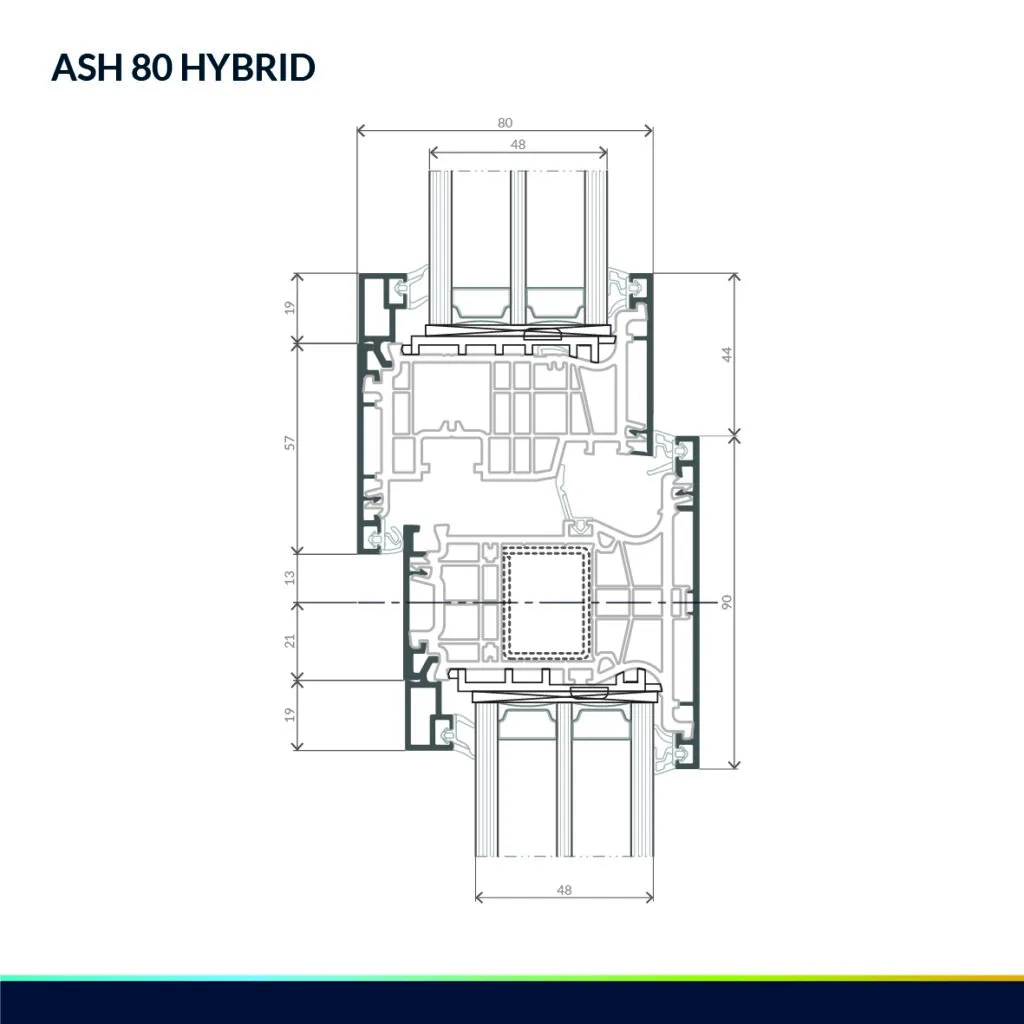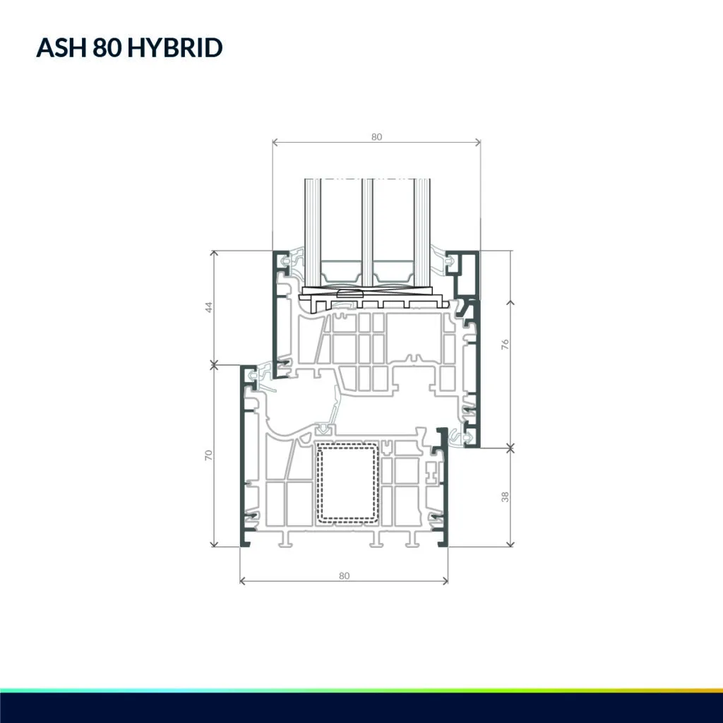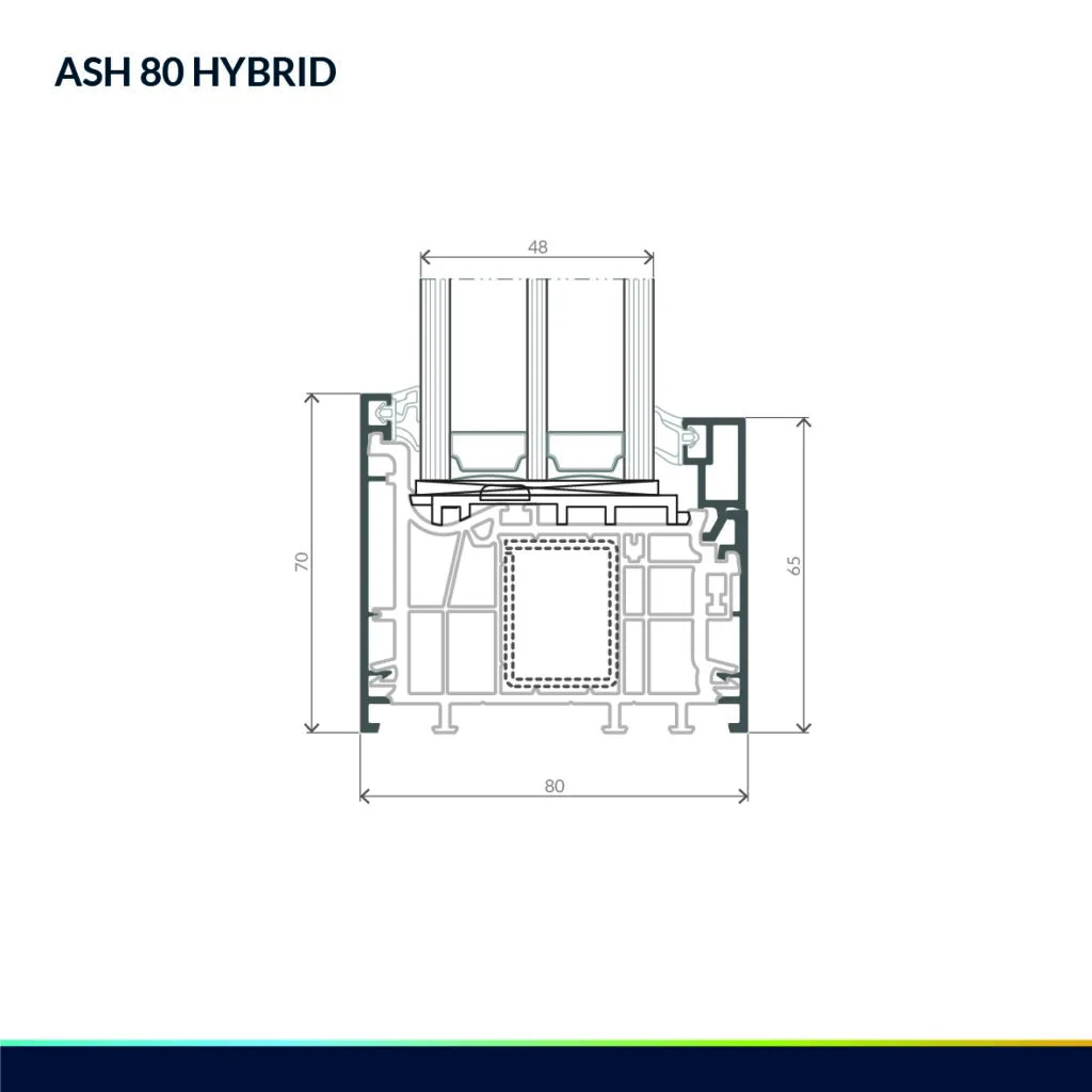 System powstał jako odpowiedź na oczekiwania rynku, który coraz częściej poszukuje produktów o wyglądzie aluminium, ale o lepszych parametrach izolacyjnych i niższych kosztach produkcji. ASH 80 HYBRID to unikalne połączenie zewnętrznych profili aluminiowych i tworzywowego rdzenia, które zapewnia równocześnie: nowoczesny design i trwałość typową dla konstrukcji aluminiowych, wysoką izolacyjność termiczną i akustyczną, niższą masę, większą łatwość obróbki oraz konkurencyjną cenę.