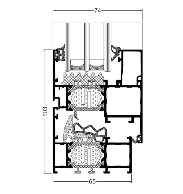 | GENESIS 65 okno (GR) | aluminium/poliamid | 65 mm | 74 mm | fix od 4 mm do 49 mm, okno od 4 mm do 55 mm | FIX, R, U, RU |