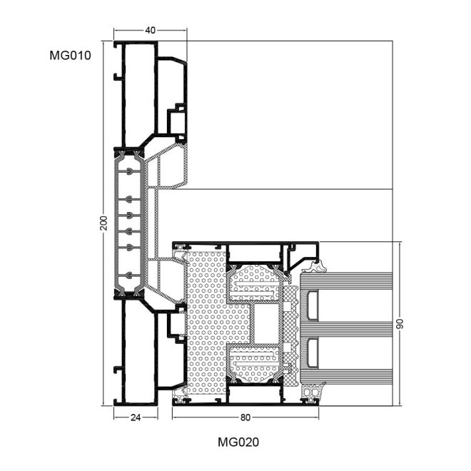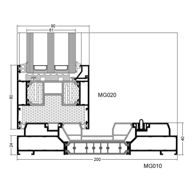 - głębokość ramy: 200 mm, głębokość skrzydła to 90 mm (jako odpowiednik głębokości zabudowy systemu okiennego Genesis 90)