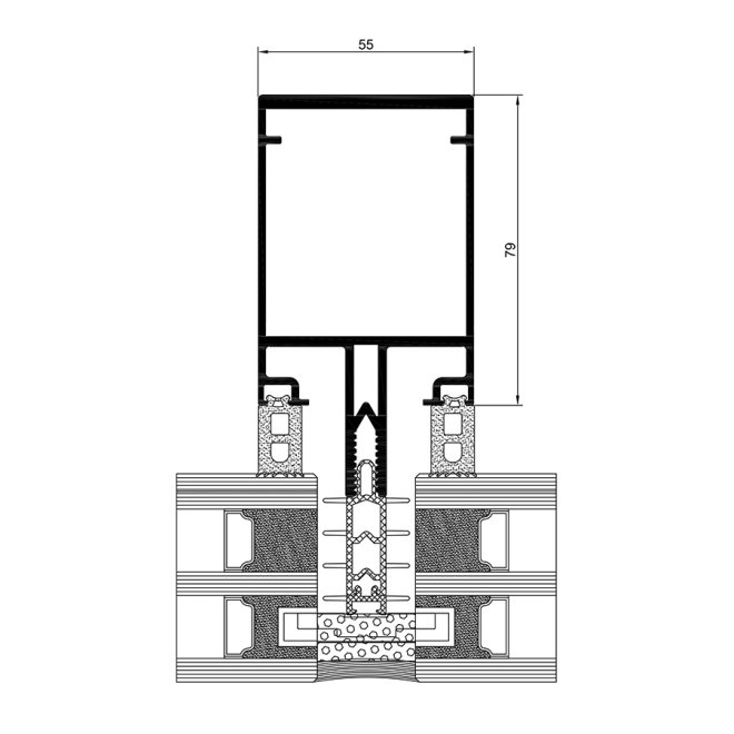- szerokość wizualna słup-rygiel: 55 mm