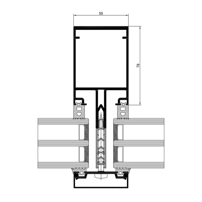 - ściana osłonowa systemu MC Wall składa się z pionowych słupów i poziomych rygli połączonych ze sobą za pomocą trzpieni wykonanych ze stali nierdzewnej; 2 łączniki z 6 ze stali nierdzewnej przypadające na jeden węzeł zapewniają bardzo wysoką nośność połączenia słup-rygiel, zarówno w płaszczyźnie oddziaływania parcia wiatru, jak i w płaszczyźnie obciążenia wypełnieniem; nie koliduje to z możliwością zastosowania tradycyjnych wsporników rygli, bądź mocowania ich tylko za pomocą wkrętów od czoła
