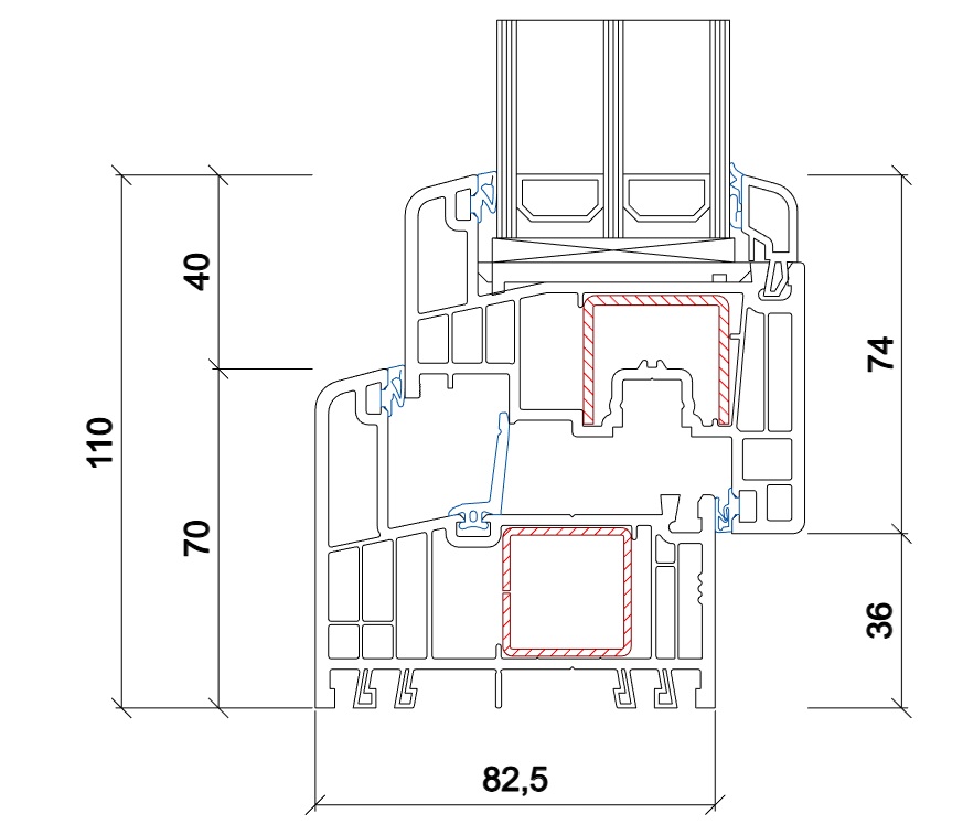 Zabudowa o głębokości 82,5 mm, sześciokomorowa konstrukcja