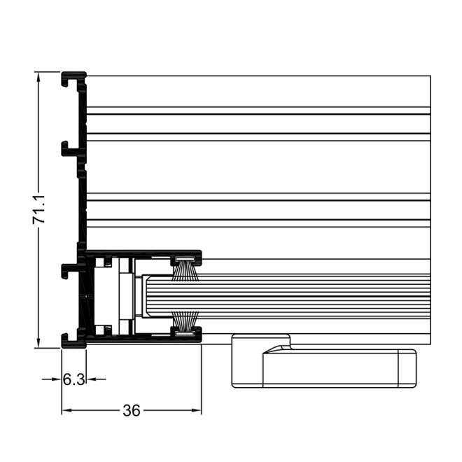 - w systemie Slide Glass dostępne rozwiązanie połączenia labiryntowego bezprofilowego (bez doszczelaniania) lub połączenie między ruchomymi skrzydłami za pomocą wąskiego profilu szczotkowego