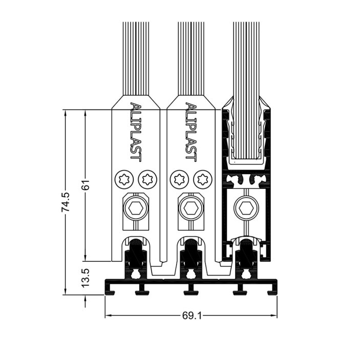 - możliwość stosowania prowadnic 3-, 4- i 5- torowych; szyny, po których przesuwają się skrzydła mogą być wykonane z aluminium lub ze stali nierdzewnej; szyny mogą być niezależne, montowane w tory jezdne