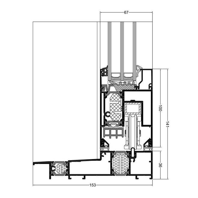 | UG – opcja niski próg | aluminium / materiał izolacyjny | od 153 mm do 239 mm | 67 mm | skrzydło 14-52 mm | do 400 kg | podnoszono-przesuwne |